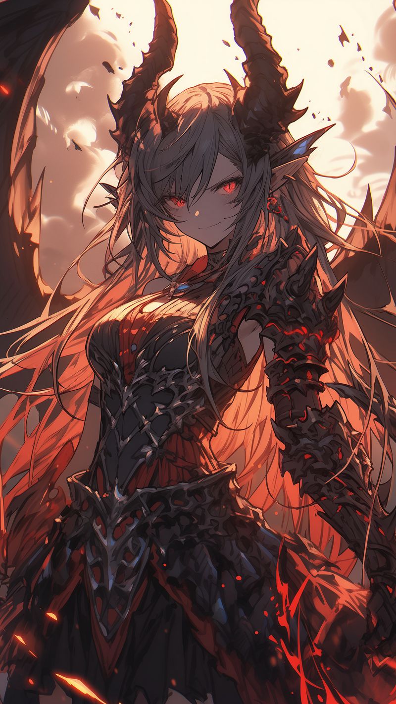 800x1420 девушка, демон, рога, доспехи, арт, аниме обои iphone se/5s/5c/5 for parallax