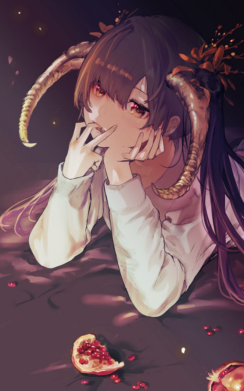800x1280 девушка, демон, рога, гранаты, аниме, арт обои samsung galaxy note gt-n7000, meizu mx2