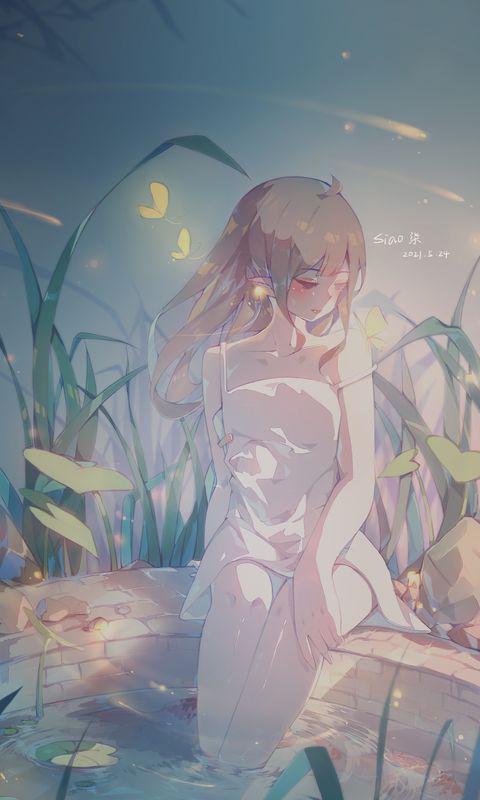 480x800 девушка, эльф, колодец, трава, аниме, арт обои nokia x, x2, xl, 520, 620, 820, samsung galaxy star, ace, asus zenfone 4