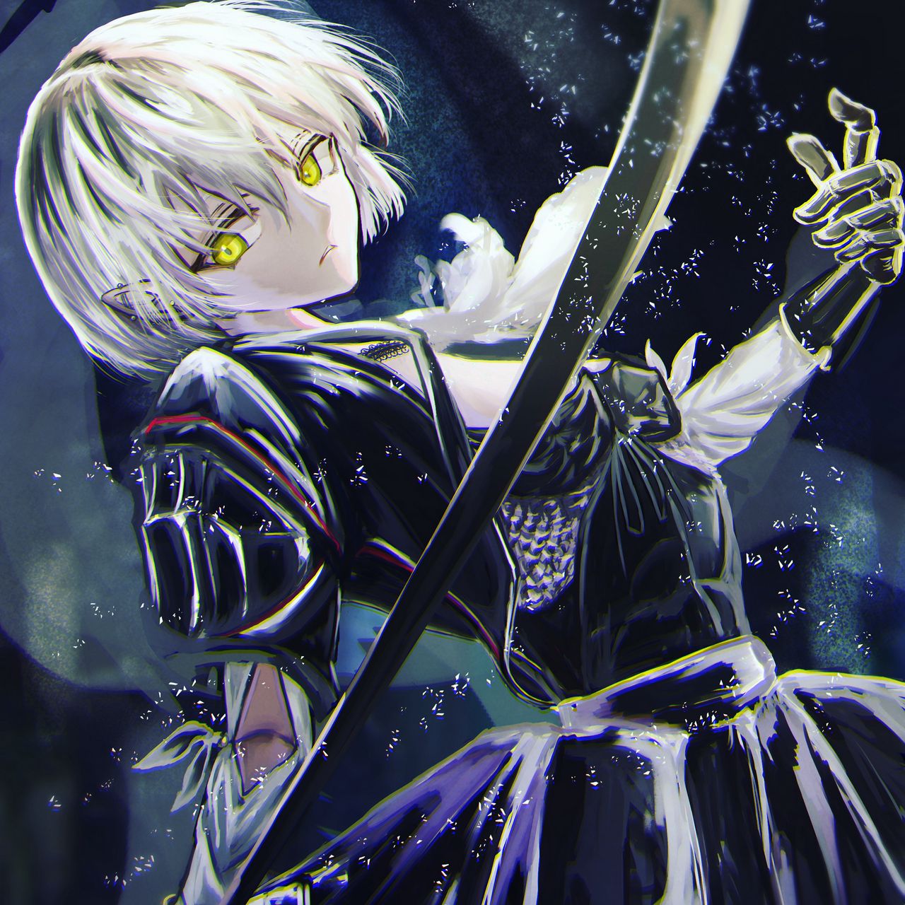 1280x1280 девушка, эльф, платье, меч, аниме обои ipad, ipad 2, ipad mini for parallax