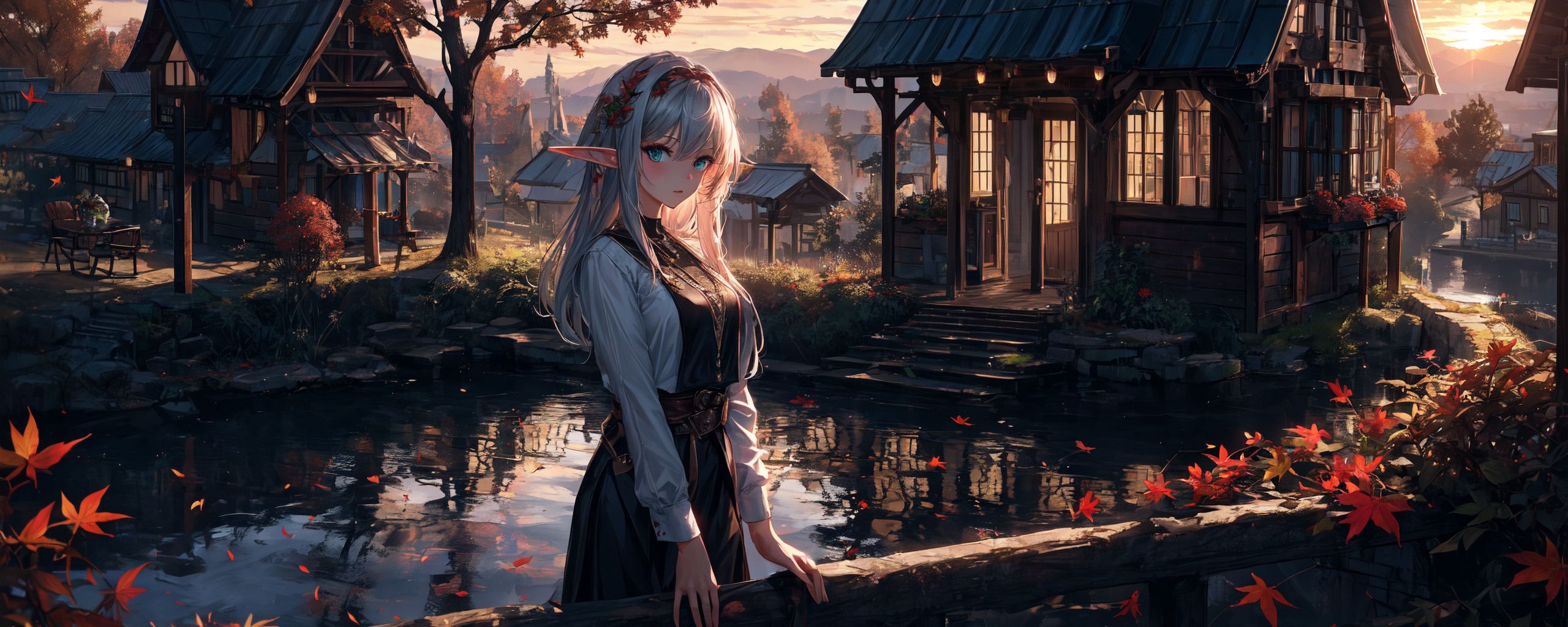 2560x1024 девушка, эльф, пруд, аниме, арт обои ультраширокий монитор