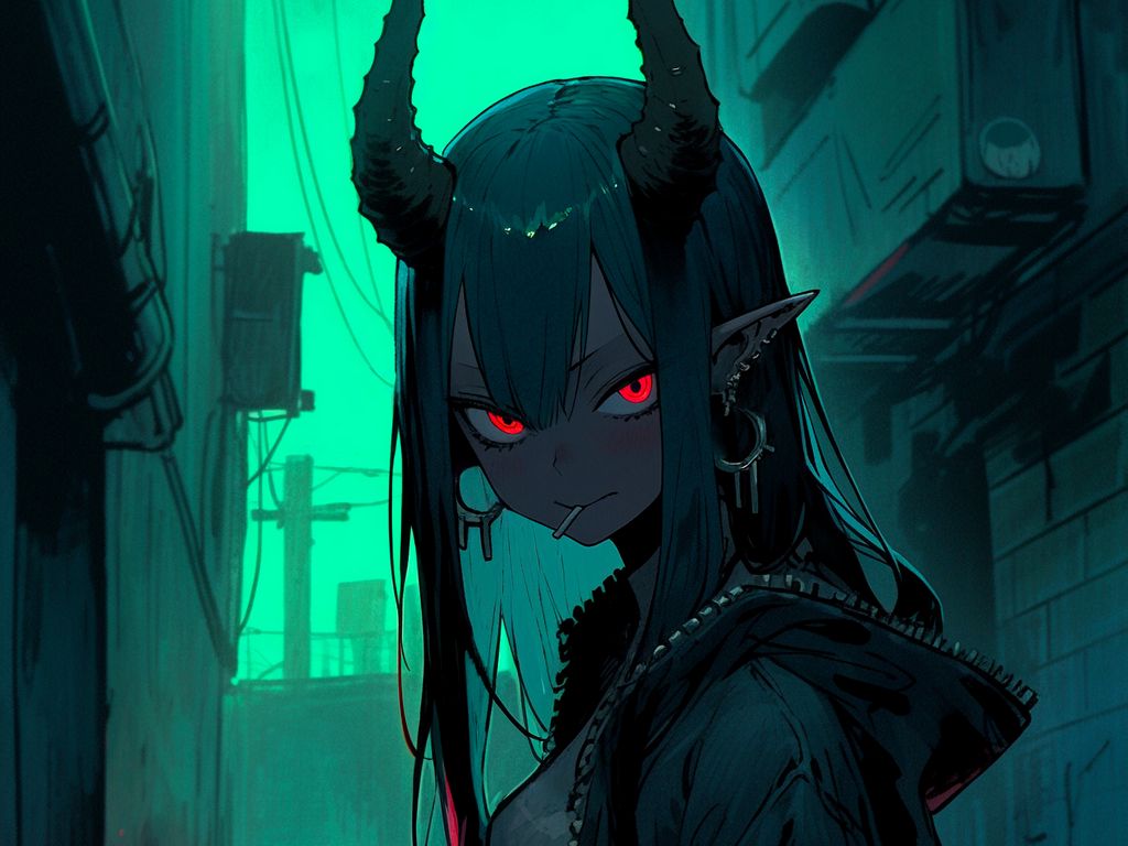 1024x768 девушка, эльф, рога, пирсинг, аниме обои стандарт 4:3