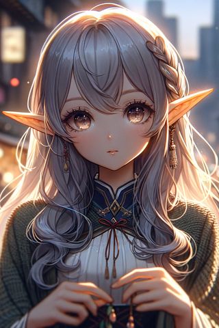 320x480 девушка, эльф, улица, вечер, аниме, арт обои samsung galaxy ace gt-s5830, sony xperia e, miro, htc wildfire s, c, lg optimus