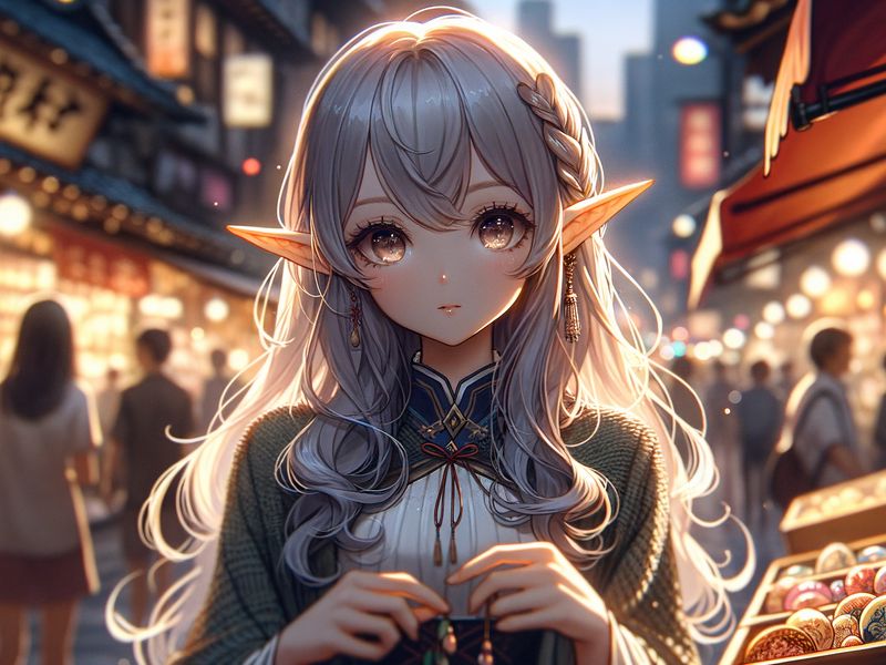 800x600 девушка, эльф, улица, вечер, аниме, арт обои pocket pc, pda, кпк