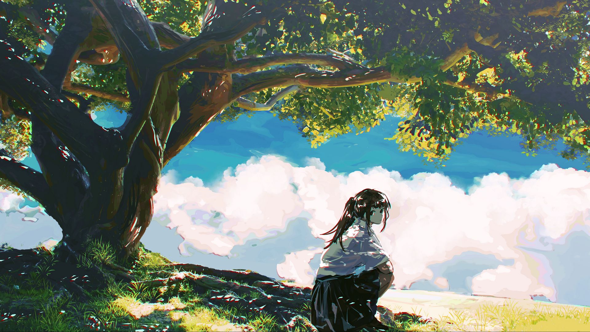 1920x1080 девушка, форма, деревья, облака, аниме обои full hd, hdtv, fhd, 1080p