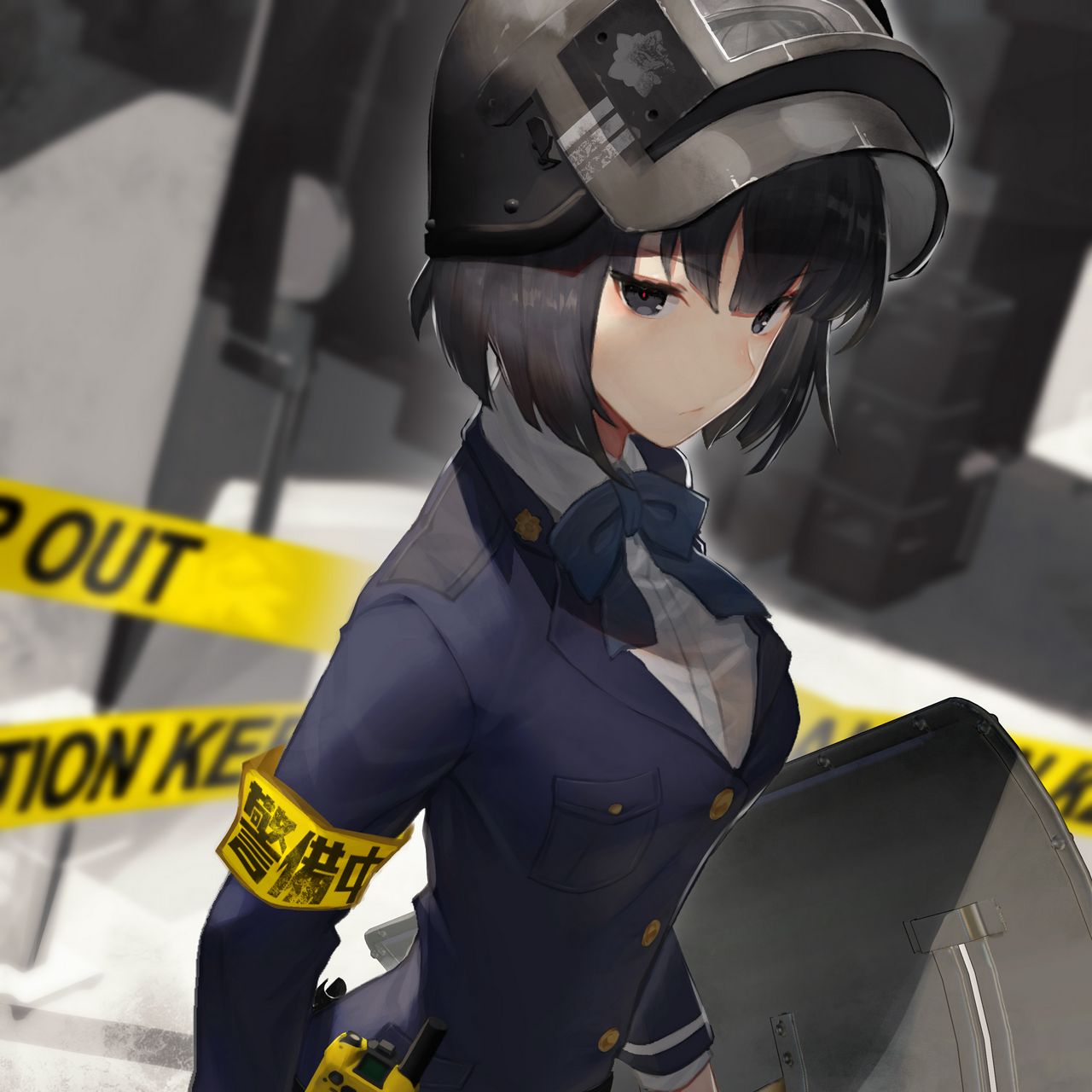 1280x1280 девушка, форма, шлем, полиция, аниме, арт обои ipad, ipad 2, ipad mini for parallax