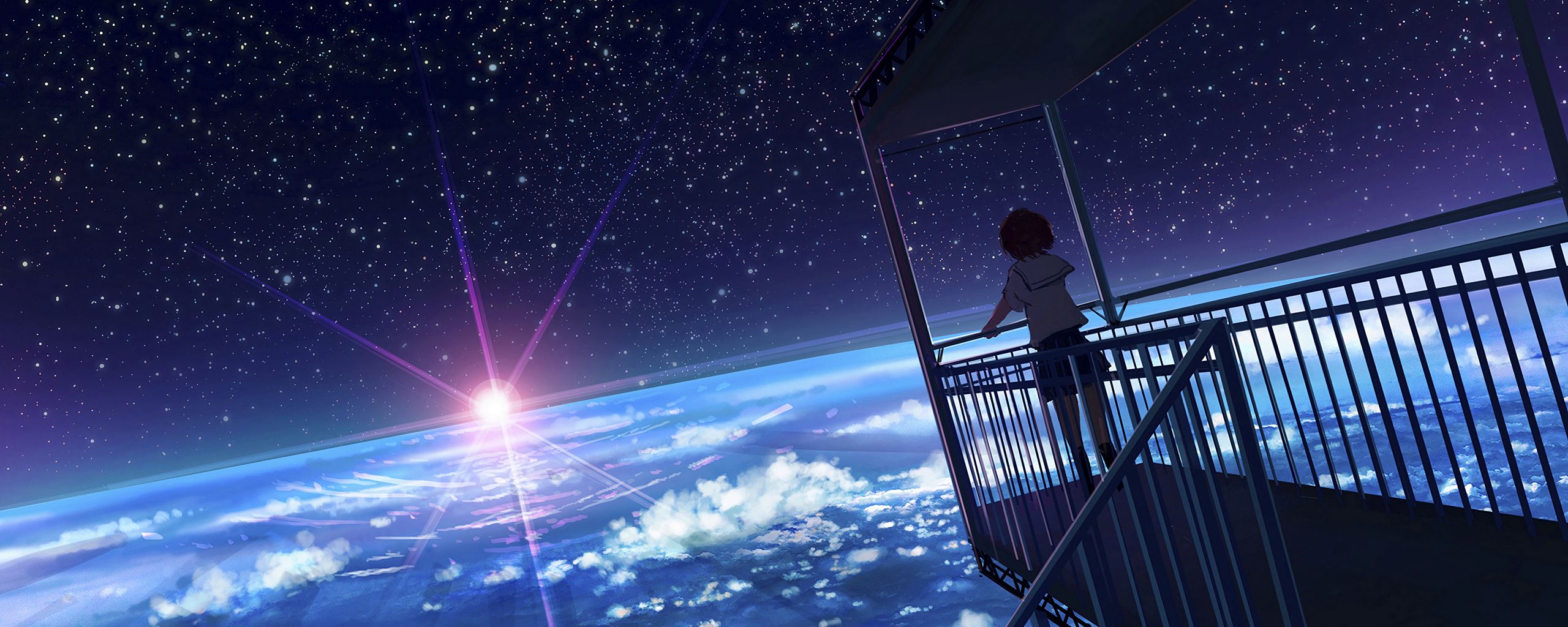 2560x1024 девушка, форма, вид, земля, космос, аниме обои ультраширокий монитор