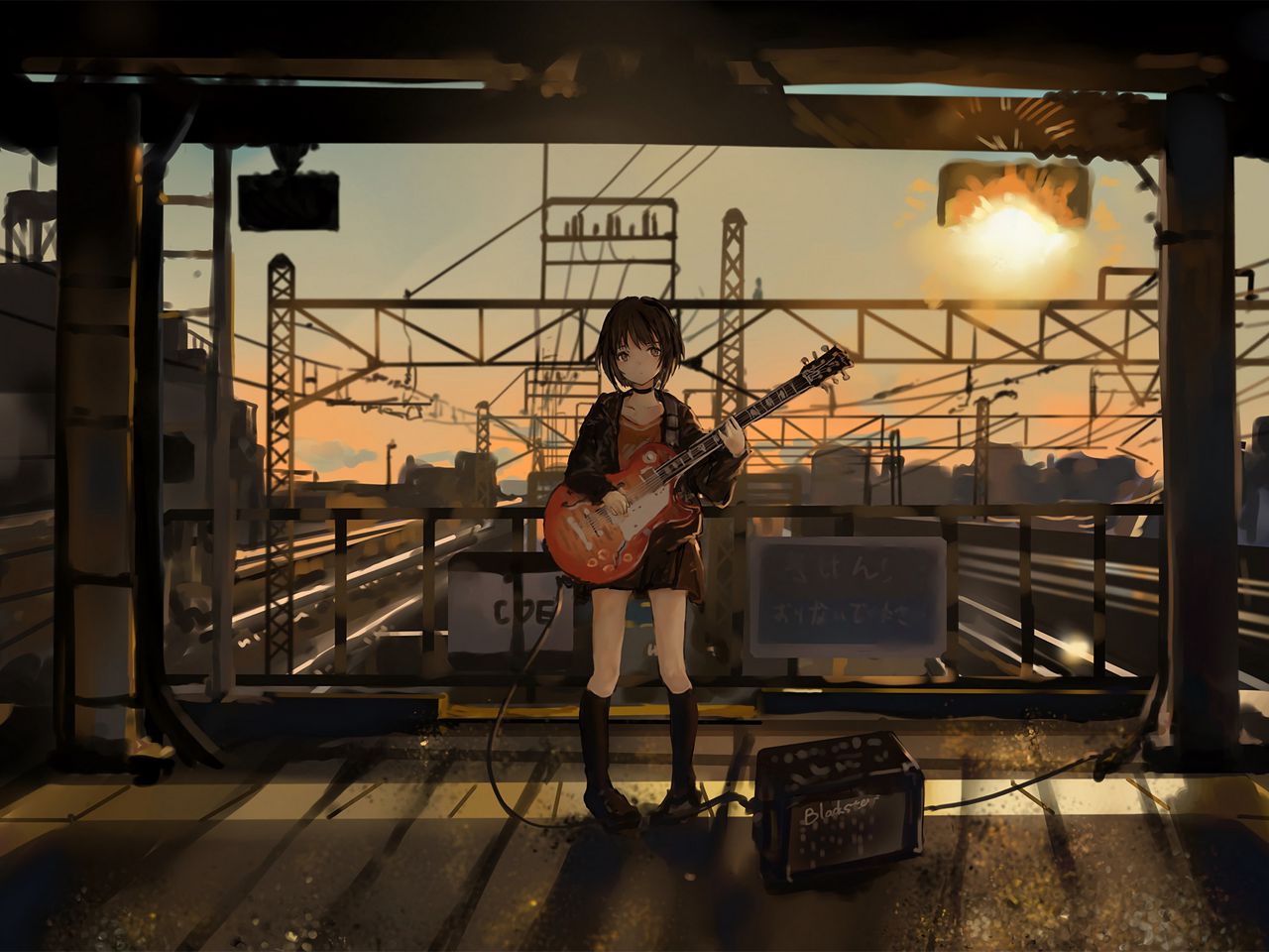 1280x960 девушка, гитара, аниме, музыкант, электрогитара, арт обои стандарт 4:3