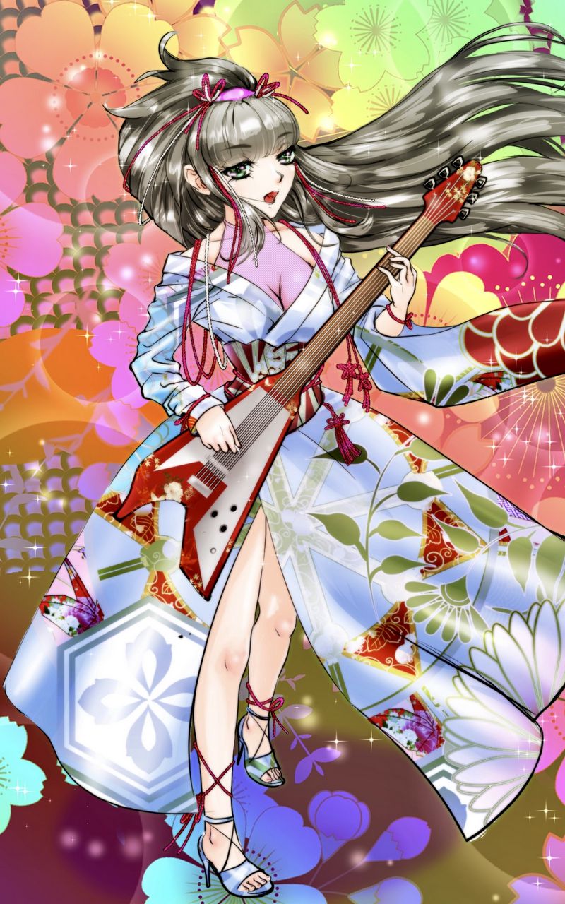 800x1280 девушка, гитара, кимоно, аниме, арт обои samsung galaxy note gt-n7000, meizu mx2