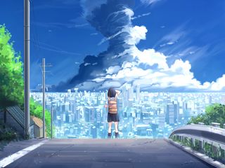 320x240 девушка, город, торнадо, аниме, арт обои nokia e72, e71, asha, alcatel onetouch