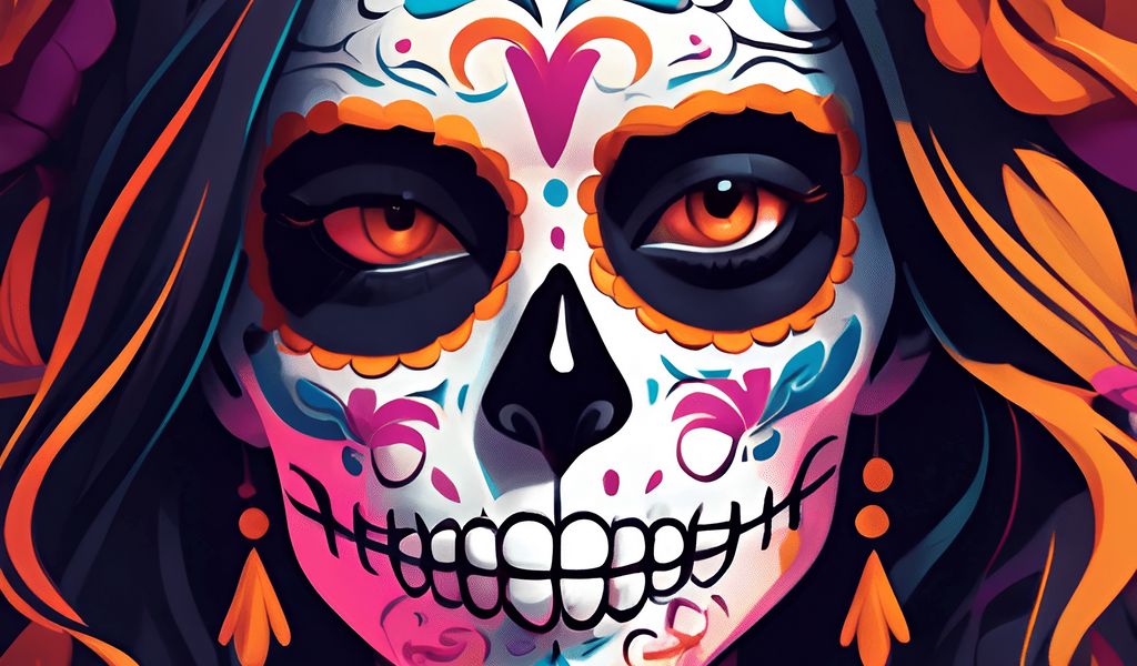 1024x600 девушка, грим, череп, скелет, день мертвых, арт обои нетбук, планшет