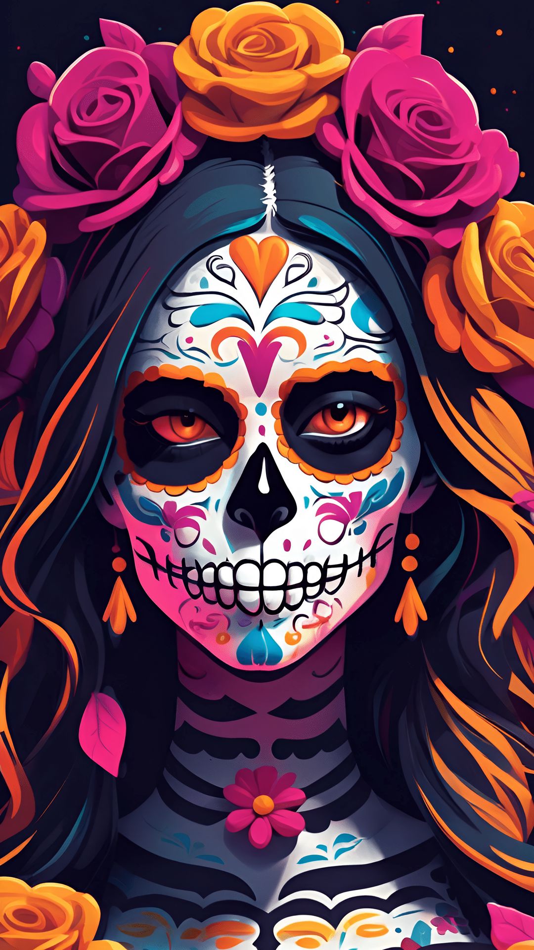 1080x1920 девушка, грим, череп, скелет, день мертвых, арт обои samsung galaxy s4, s5, note, sony xperia z, z1, z2, z3, htc one, lenovo vibe