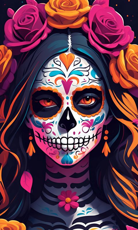 480x800 девушка, грим, череп, скелет, день мертвых, арт обои nokia x, x2, xl, 520, 620, 820, samsung galaxy star, ace, asus zenfone 4