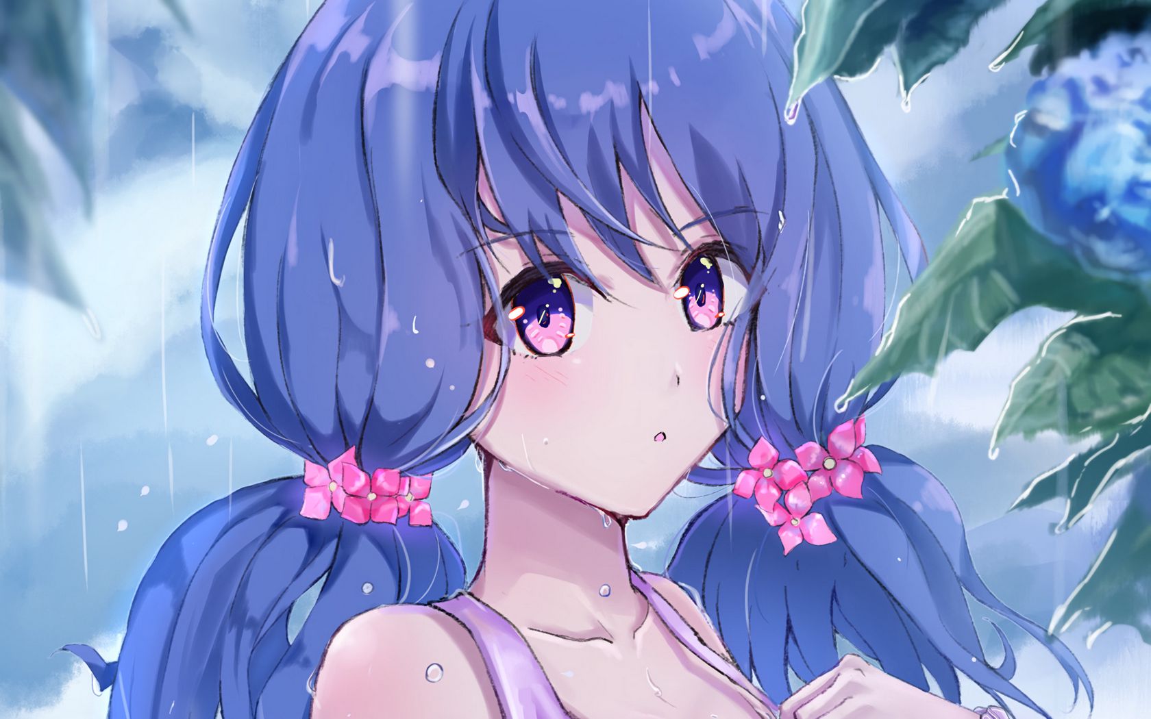 1680x1050 девушка, хвостики, дождь, капли, аниме обои 16:10