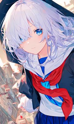 240x400 девушка, капюшон, лента, аниме обои nokia asha 311, samsung galaxy 580, omnia, lg kp500