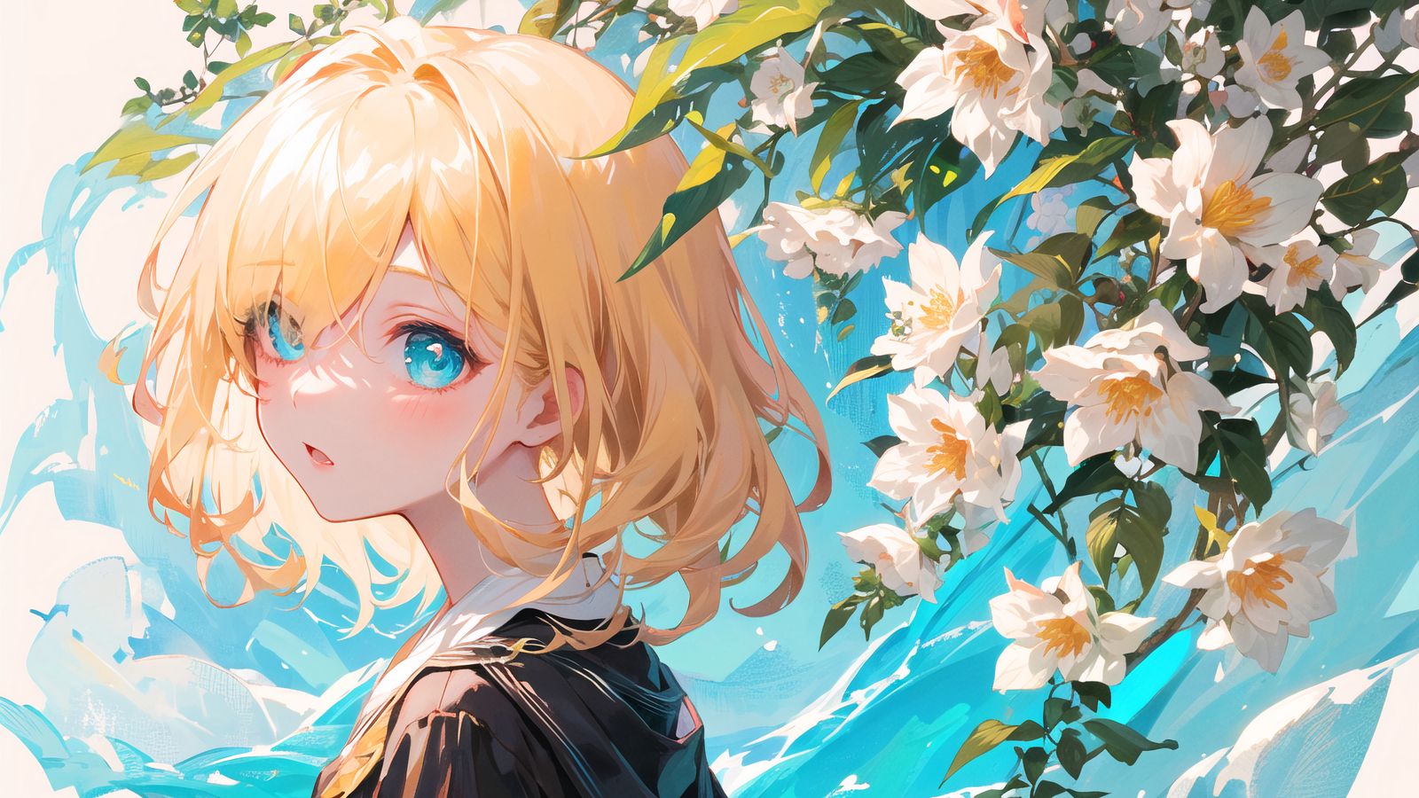1600x900 девушка, капюшон, цветы, аниме обои 16:9