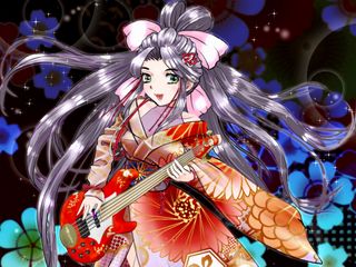 320x240 девушка, кимоно, гитара, аниме, арт обои nokia e72, e71, asha, alcatel onetouch