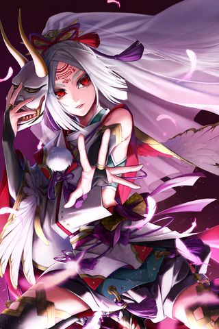 320x480 девушка, кимоно, маска, аниме, арт обои samsung galaxy ace gt-s5830, sony xperia e, miro, htc wildfire s, c, lg optimus
