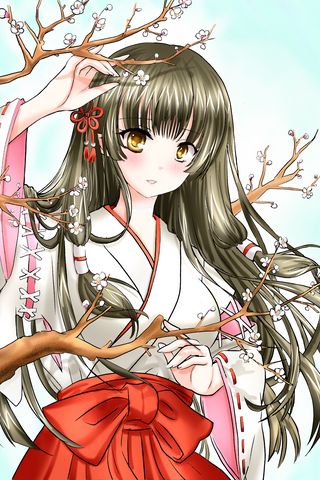 320x480 девушка, кимоно, сакура, ветки, аниме, арт обои samsung galaxy ace gt-s5830, sony xperia e, miro, htc wildfire s, c, lg optimus
