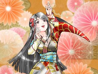 320x240 девушка, кимоно, танец, аниме обои nokia e72, e71, asha, alcatel onetouch