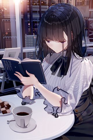 320x480 девушка, книга, кофе, ресторан, аниме обои samsung galaxy ace gt-s5830, sony xperia e, miro, htc wildfire s, c, lg optimus