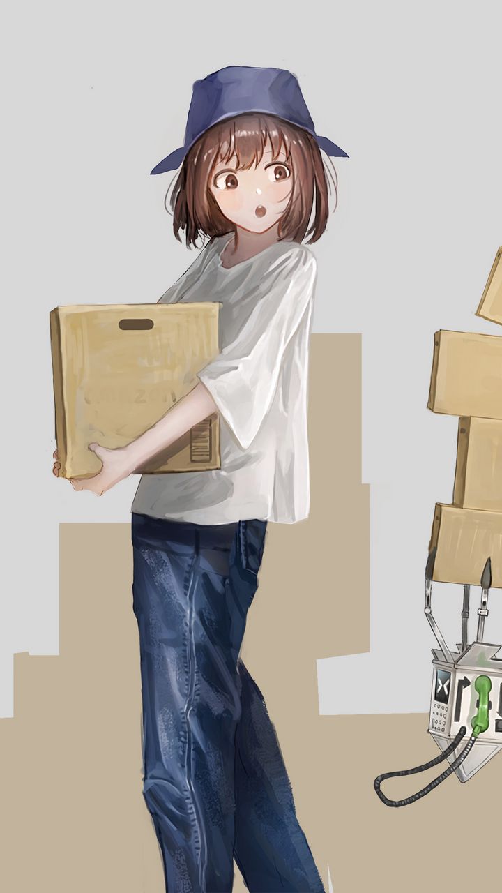 720x1280 девушка, коробки, робот, аниме, арт обои samsung galaxy mini s3, s5, neo, alpha, sony xperia compact z1, z2, z3, asus zenfone