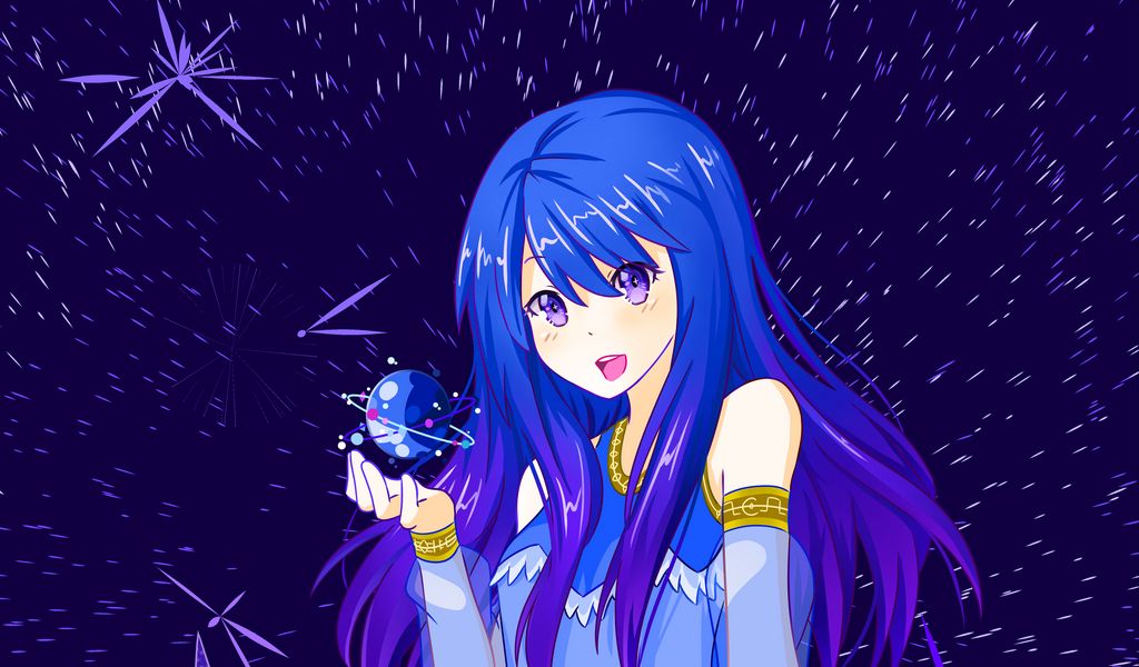1024x600 девушка, космос, аниме, луна, планета обои нетбук, планшет