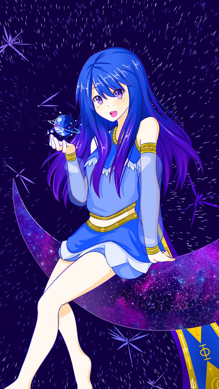720x1280 девушка, космос, аниме, луна, планета обои samsung galaxy mini s3, s5, neo, alpha, sony xperia compact z1, z2, z3, asus zenfone