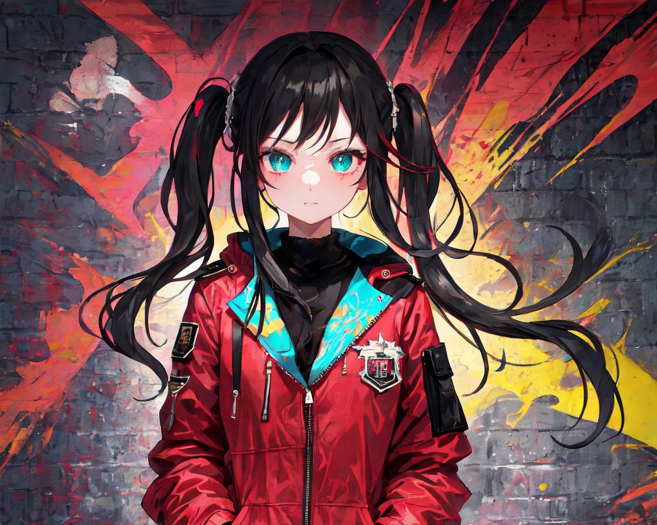 1280x1024 девушка, куртка, кирпичи, граффити, краска, стена, аниме обои стандарт 5:4