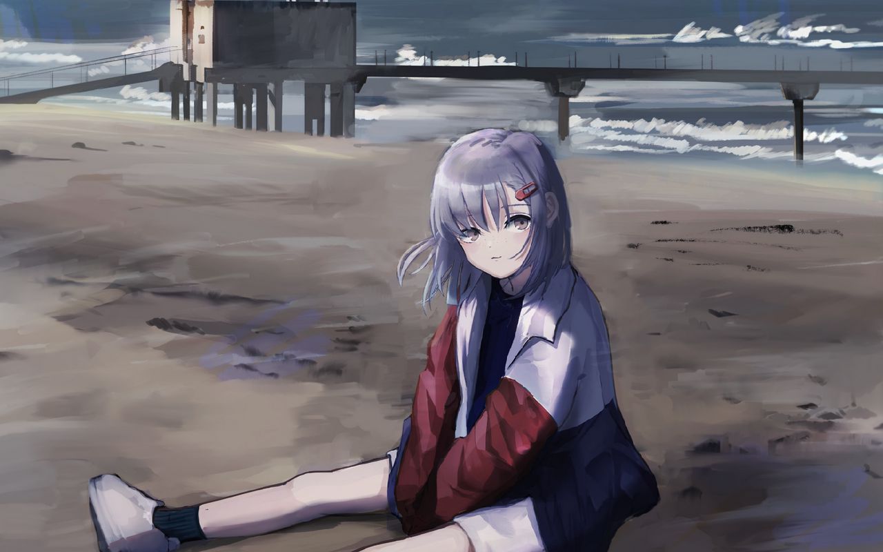 1280x800 девушка, куртка, пляж, аниме, арт обои 16:10