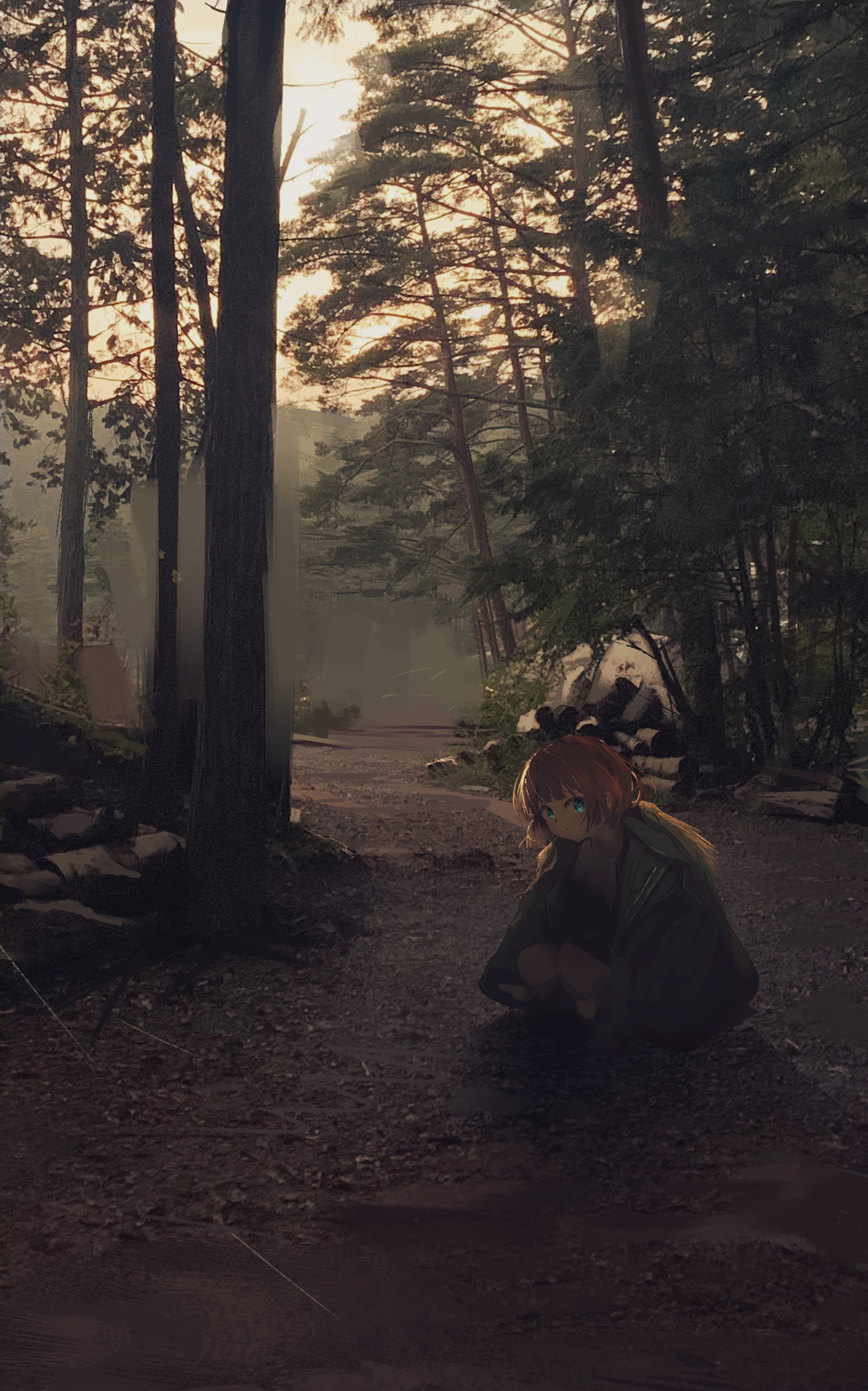 2406x3855 девушка, лес, природа, одиночество, аниме, арт обои