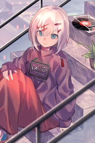 320x480 девушка, лестница, цветок, растение, аниме, арт обои samsung galaxy ace gt-s5830, sony xperia e, miro, htc wildfire s, c, lg optimus