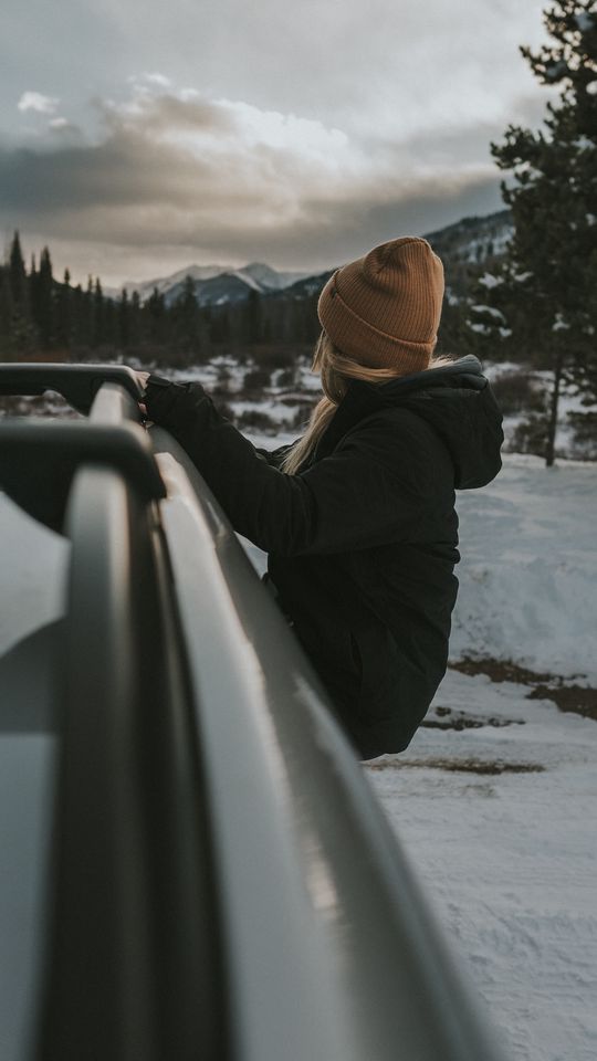 540x960 девушка, машина, вид, горы, пейзаж обои samsung galaxy s4 mini, microsoft lumia 535, philips xenium, lg l90, htc sensation
