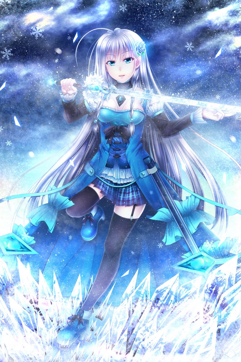 800x1200 девушка, меч, лед, аниме, арт, синий обои iphone 4s/4 for parallax