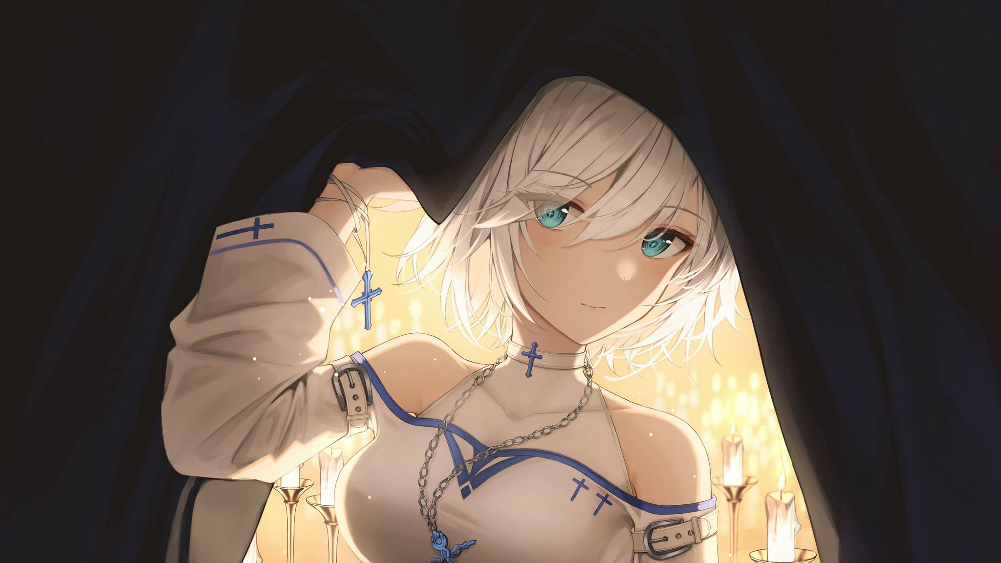 2048x1152 девушка, монашка, кресты, аниме, арт обои ультраширокий монитор
