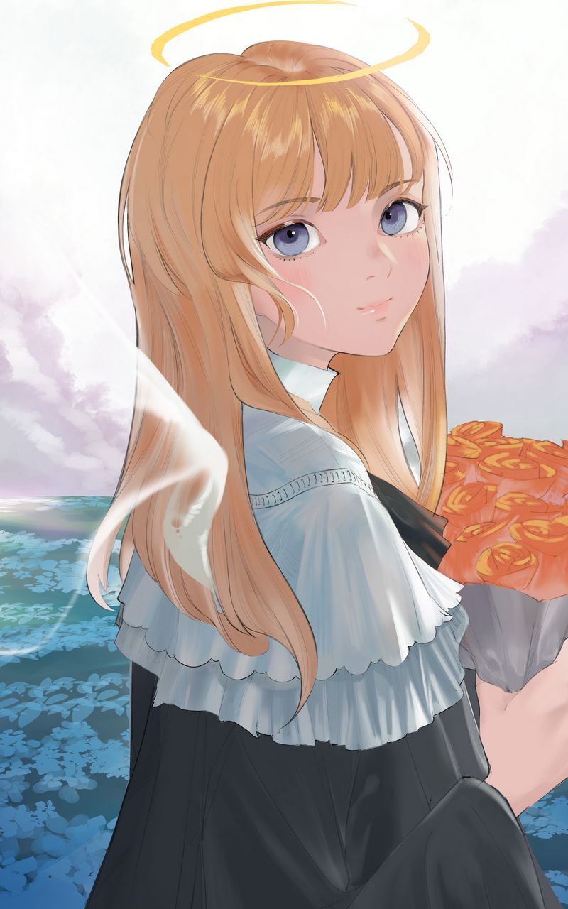 800x1280 девушка, монашка, нимб, аниме обои samsung galaxy note gt-n7000, meizu mx2