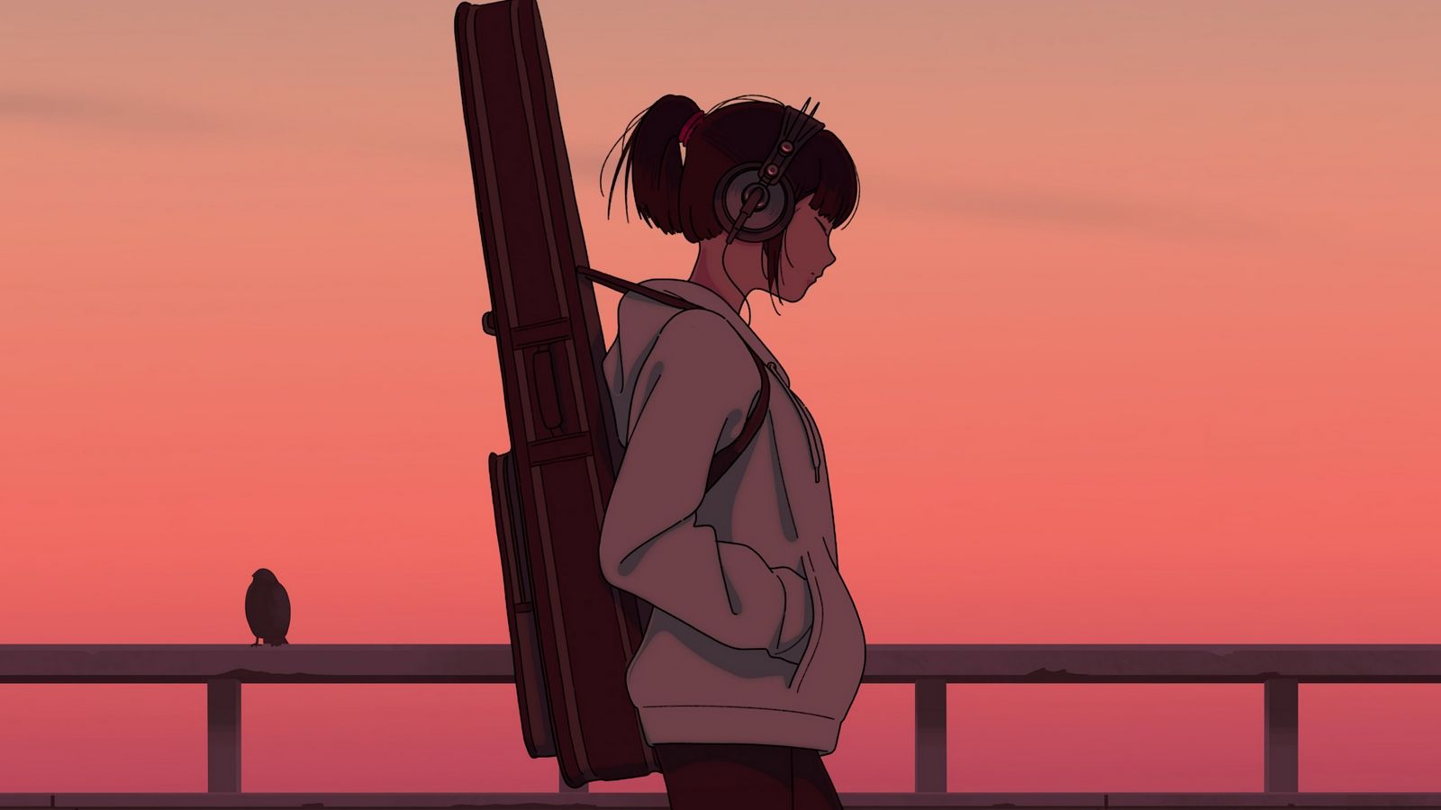 1600x900 девушка, музыкант, гитара, наушники, арт обои 16:9