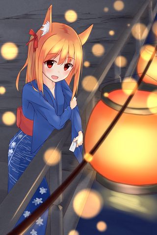 320x480 девушка, неко, кимоно, боке, аниме обои samsung galaxy ace gt-s5830, sony xperia e, miro, htc wildfire s, c, lg optimus
