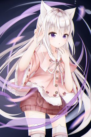 320x480 девушка, неко, ушки, аниме, арт, фиолетовый обои samsung galaxy ace gt-s5830, sony xperia e, miro, htc wildfire s, c, lg optimus