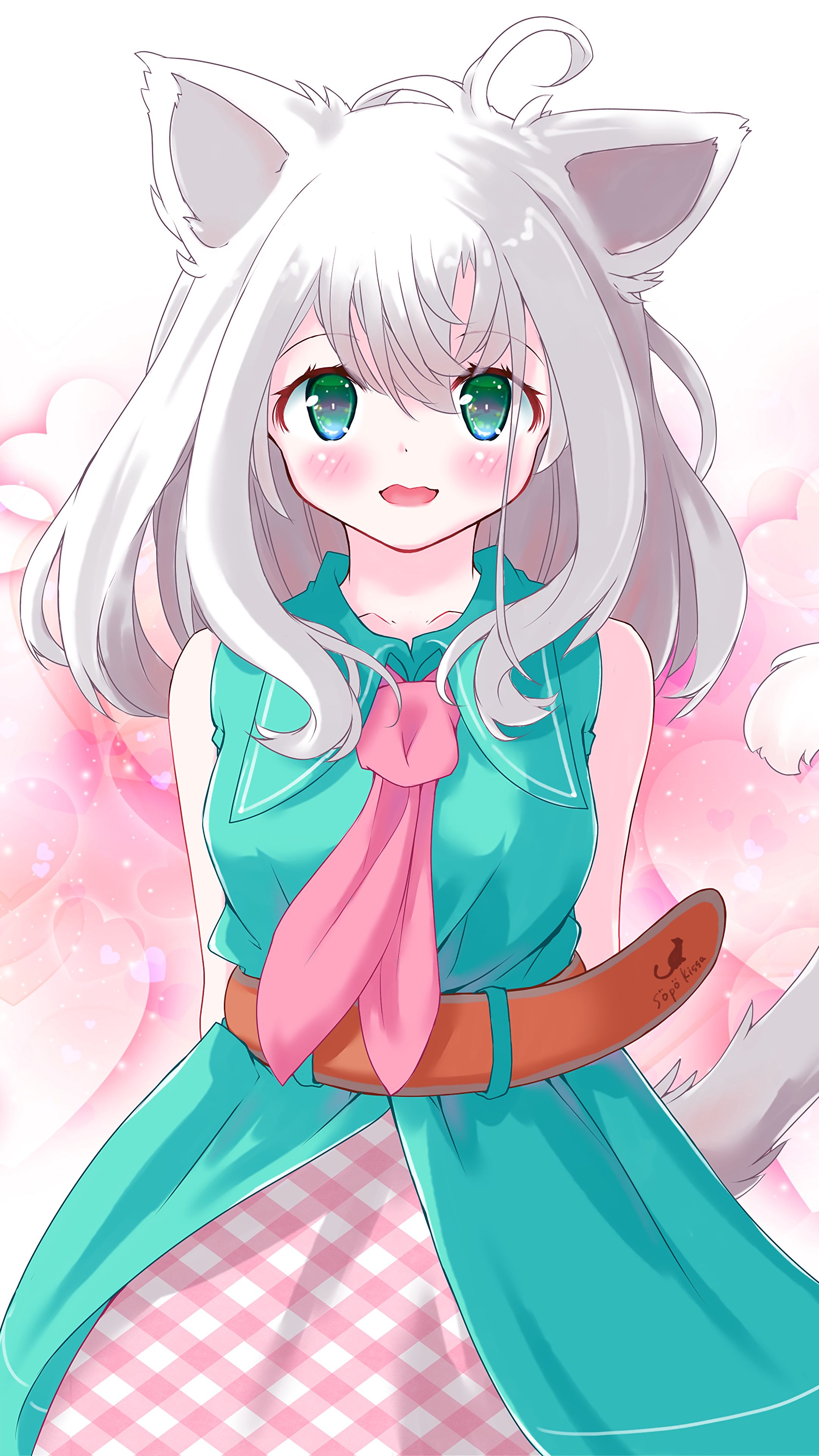 2160x3840 девушка, неко, ушки, взгляд, аниме, арт, милый обои samsung galaxy s4, s5, note, sony xperia z, z1, z2, z3, htc one, lenovo vibe