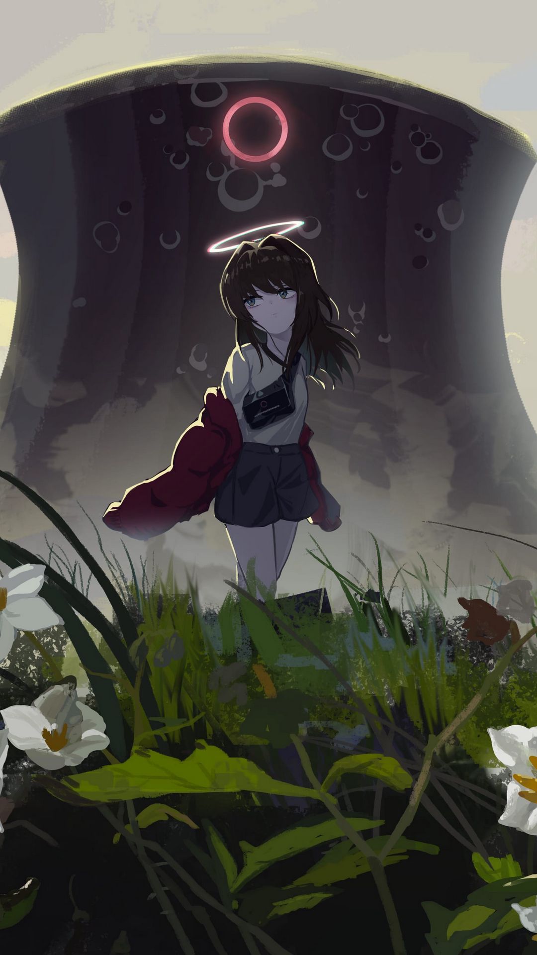 1080x1920 девушка, нимб, цветы, поле, аниме обои samsung galaxy s4, s5, note, sony xperia z, z1, z2, z3, htc one, lenovo vibe