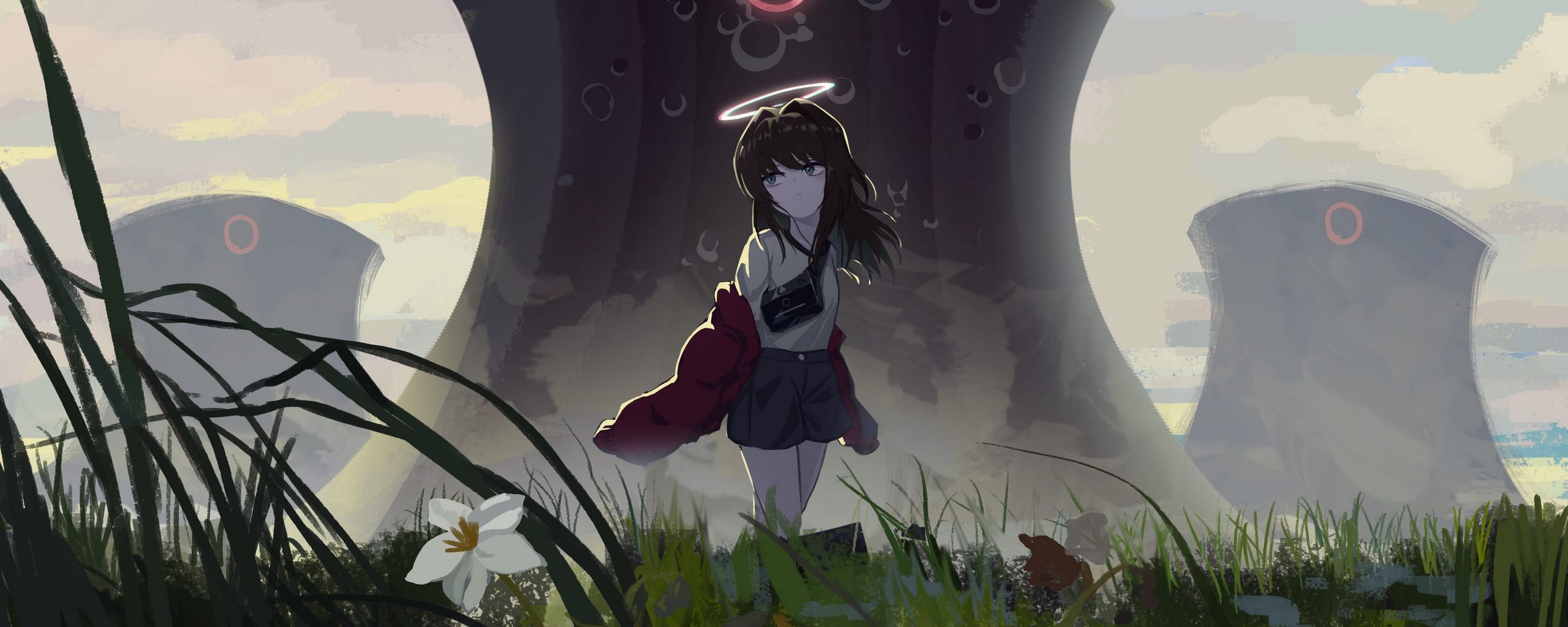 2560x1024 девушка, нимб, цветы, поле, аниме обои ультраширокий монитор