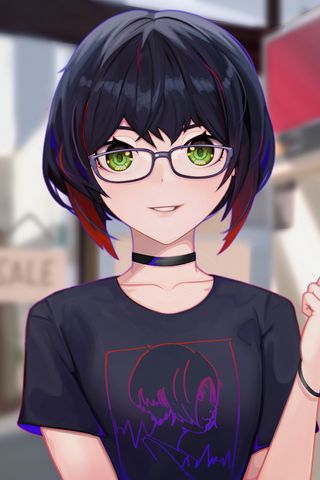 320x480 девушка, очки, чокер, аниме, арт обои samsung galaxy ace gt-s5830, sony xperia e, miro, htc wildfire s, c, lg optimus