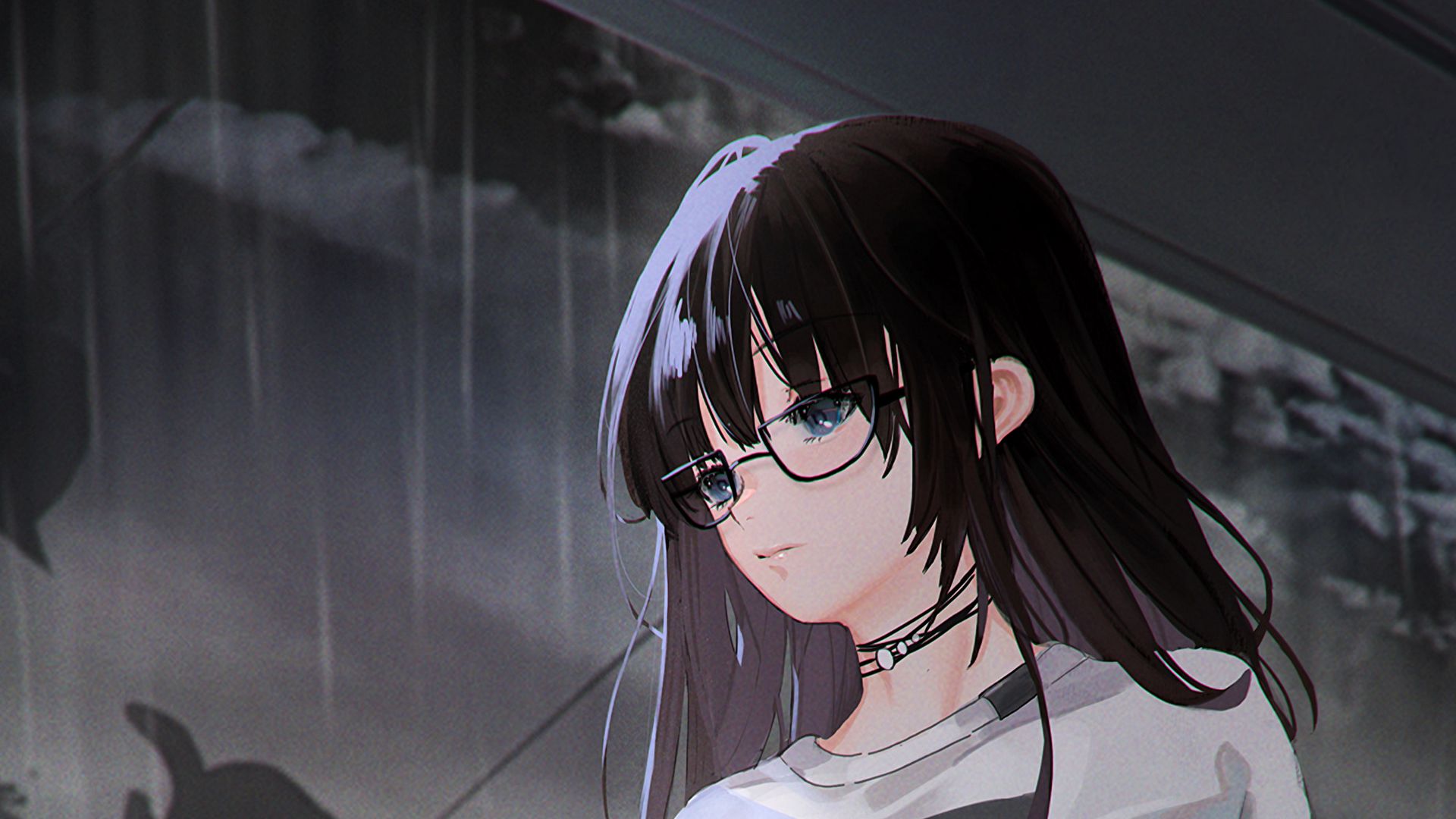 1920x1080 девушка, очки, грусть, дождь, аниме обои full hd, hdtv, fhd, 1080p