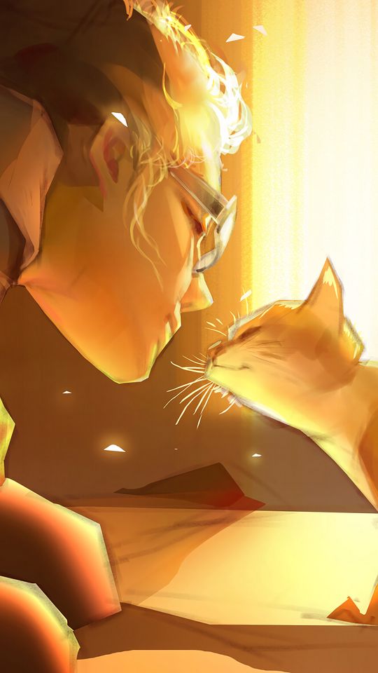540x960 девушка, очки, кошка, нежность, арт обои samsung galaxy s4 mini, microsoft lumia 535, philips xenium, lg l90, htc sensation