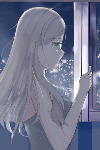 320x480 девушка, очки, окно, аниме обои samsung galaxy ace gt-s5830, sony xperia e, miro, htc wildfire s, c, lg optimus