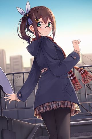 320x480 девушка, очки, пальто, аниме обои samsung galaxy ace gt-s5830, sony xperia e, miro, htc wildfire s, c, lg optimus