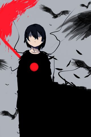 320x480 девушка, перья, птица, аниме обои samsung galaxy ace gt-s5830, sony xperia e, miro, htc wildfire s, c, lg optimus