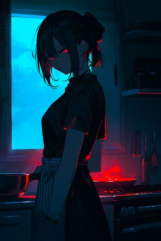 320x480 девушка, пирсинг, кухня, аниме, темный, арт обои samsung galaxy ace gt-s5830, sony xperia e, miro, htc wildfire s, c, lg optimus