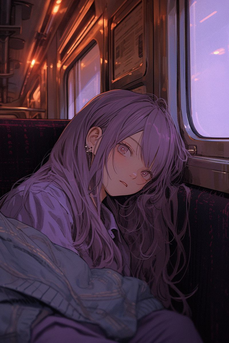 800x1200 девушка, пирсинг, окно, фиолетовый, аниме обои iphone 4s/4 for parallax